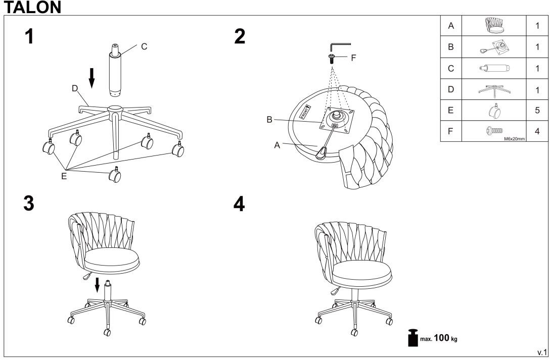 Eleganckie krzesło biurowe jasnobeżowe z plecionym oparciem 60/75-85 cm