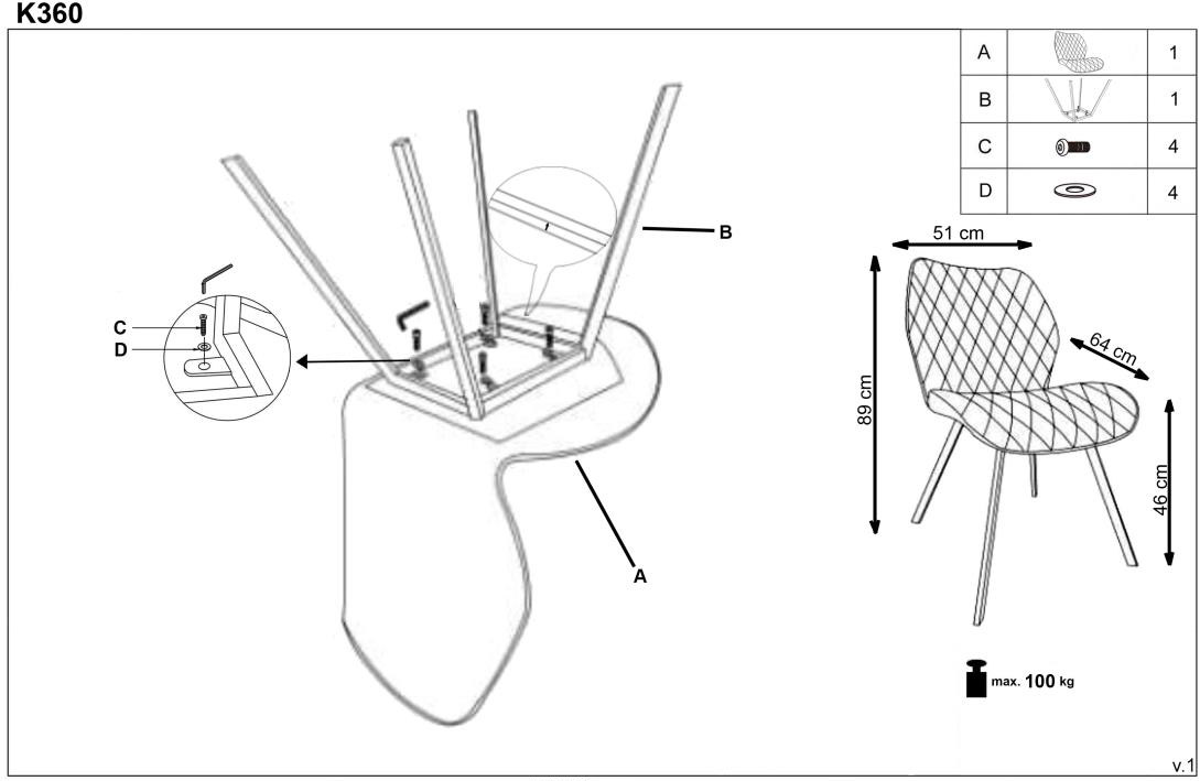 Krzesło do jadalni z tapicerką przeszytą w romby z czarnymi metalowymi nogami szare 64x90 cm