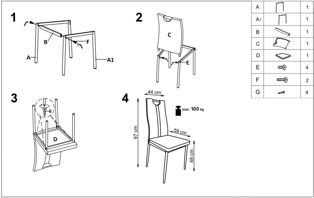 Krzesło ekoskóra szara nogi ze stali 44x97 cm