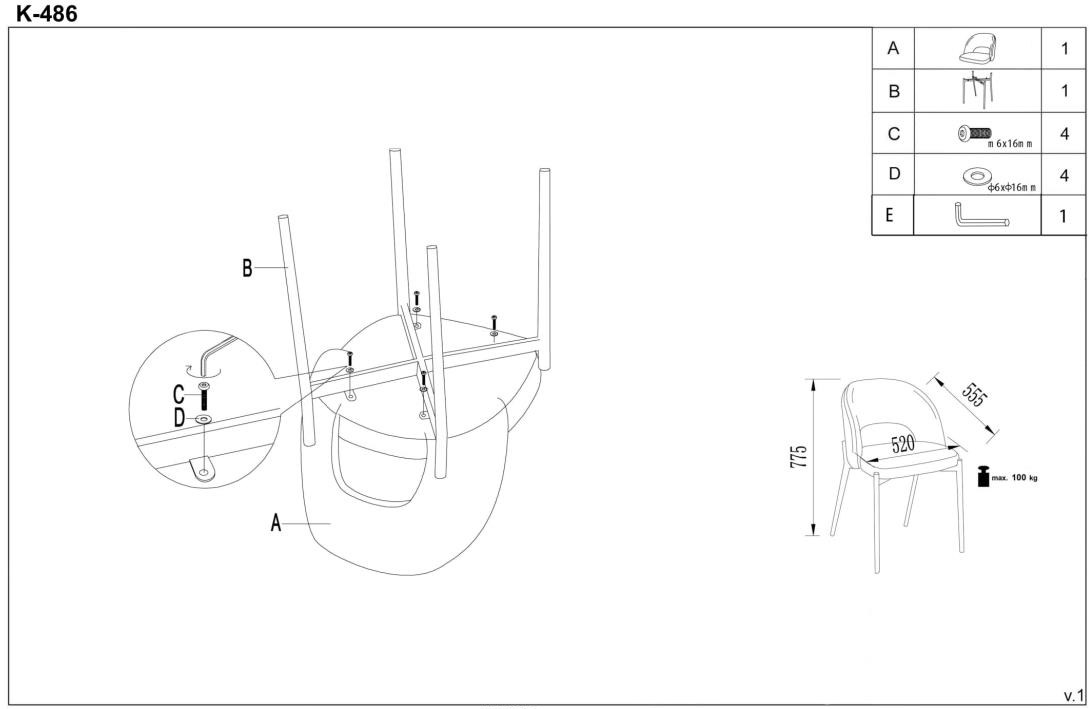 Krzesło szare z białymi metalowymi nogami 57x77 cm