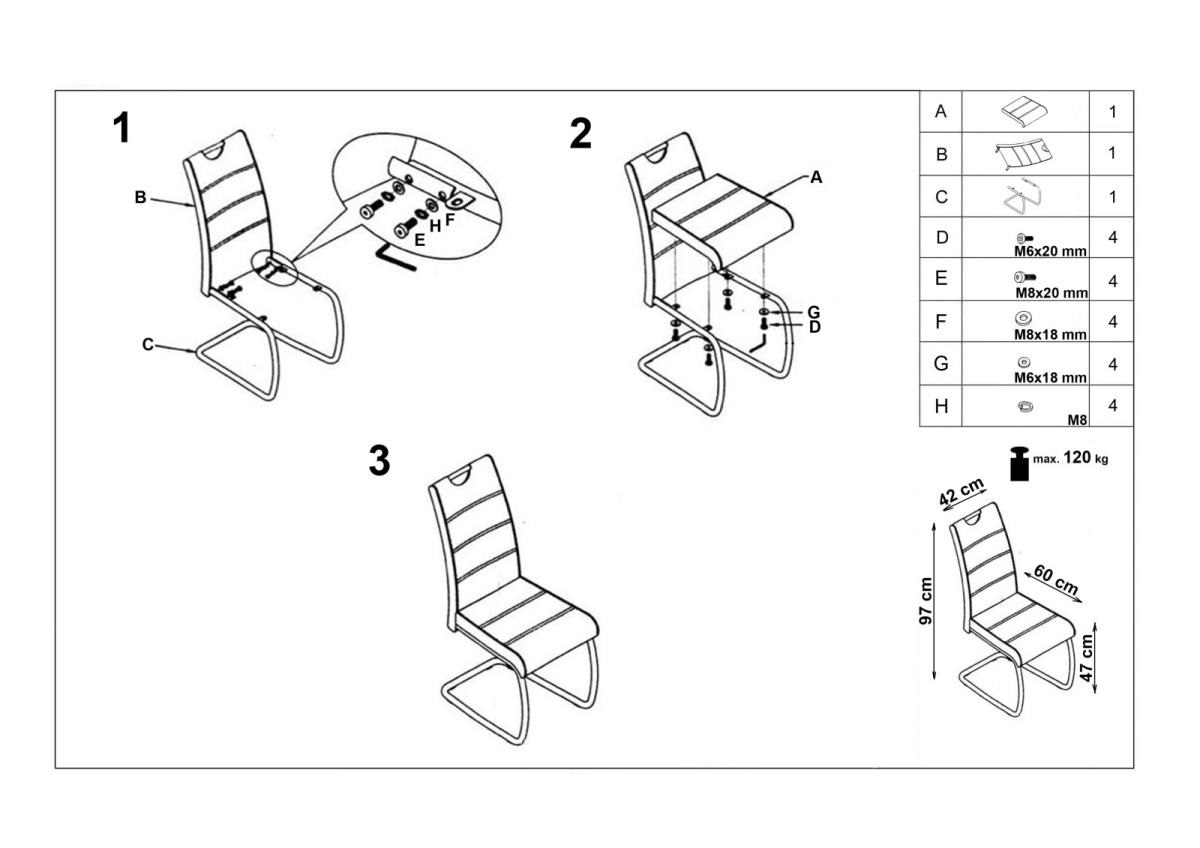 Krzesło tapicerowane do jadalni ekoskóra białe - podstawa stal chromowana 42x97 cm