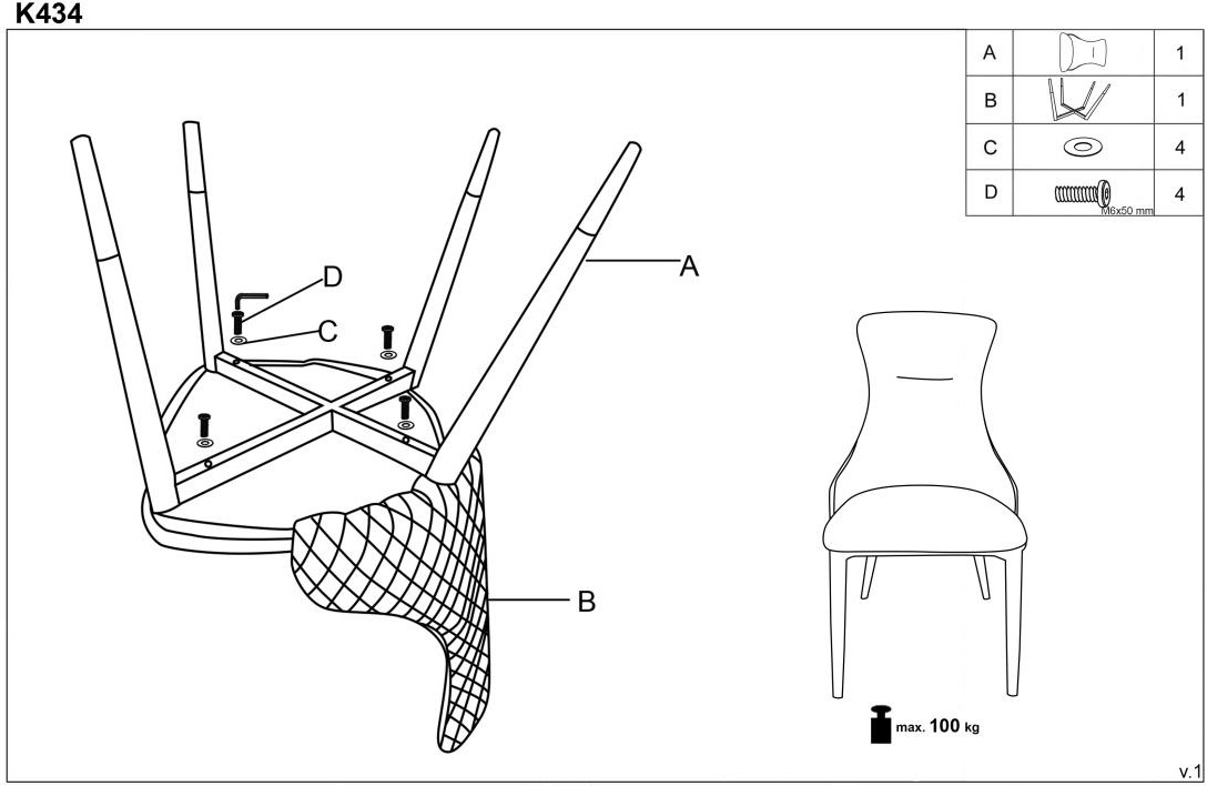 Krzesło tapicerowane z czarnymi nogami i czarnym oparciem z ekoskóry szare 54x97 cm