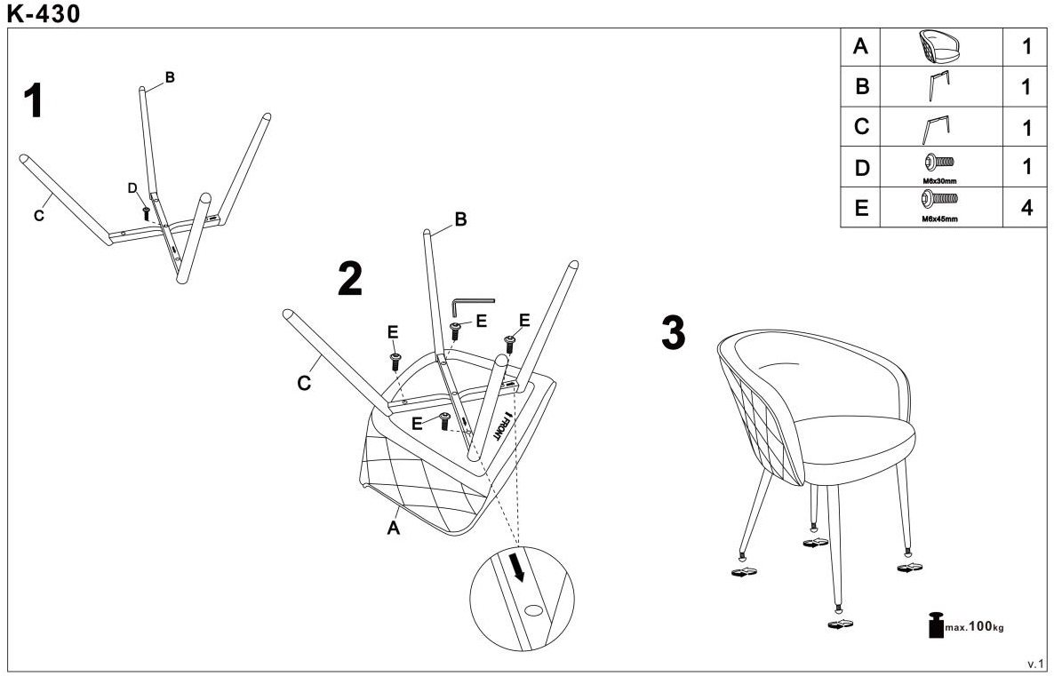 Krzesło tapicerowane z wygodnym oparciem i czarnymi nogami szare 54x77 cm