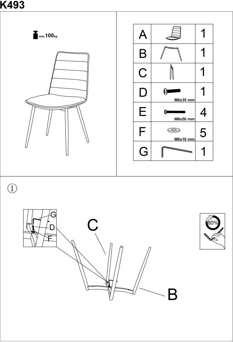 Proste krzesło tapicerowane do jadalni szare 60x92 cm