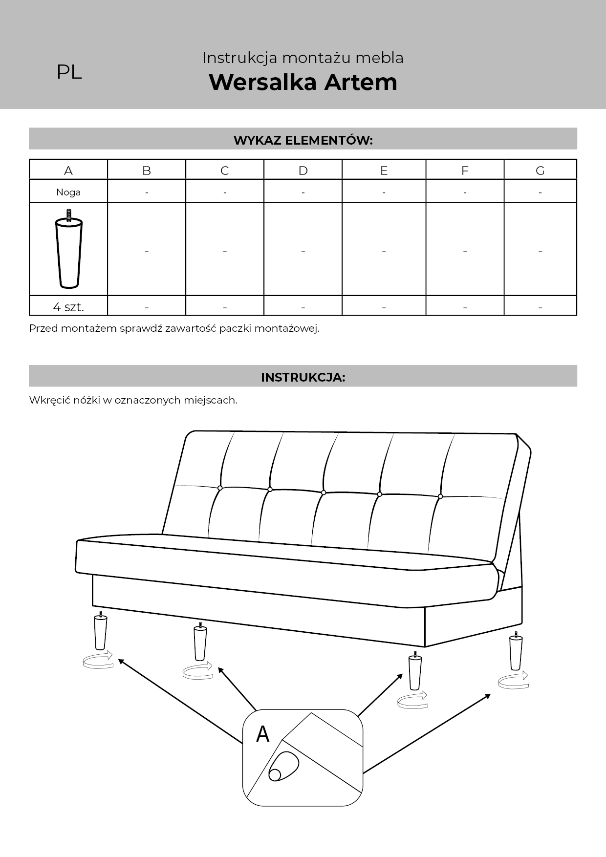 Podane wymiary mebli tapicerowanych (sofy, narożniki, łóżka) to wymiary orientacyjne, które mogą nieznacznie różnić się od rzeczywistych (tolerancja wymiaru: +/- do 3 cm). Ewentualne różnice mogą być spowodowane różnymi rodzajami zastosowanych materiałów obiciowych oraz wypełnienia – dotyczy to w szczególności produktów dostępnych w kilku wariantach kolorystycznych.
