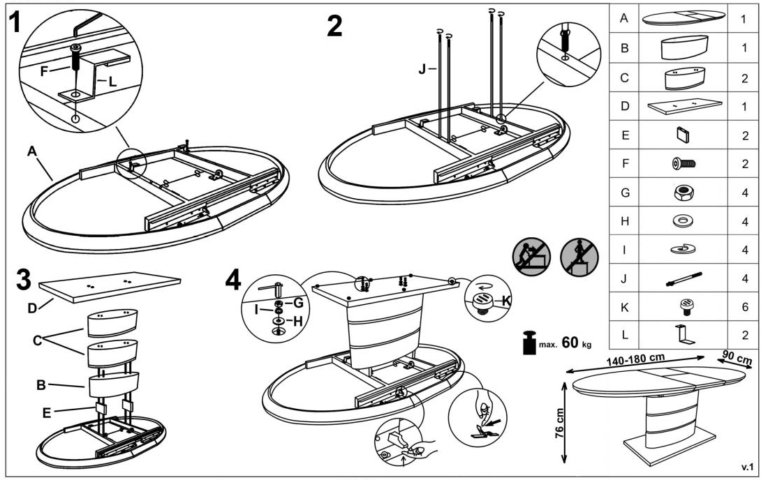 Stół rozkładany biały MDF 140-180x90 cm
