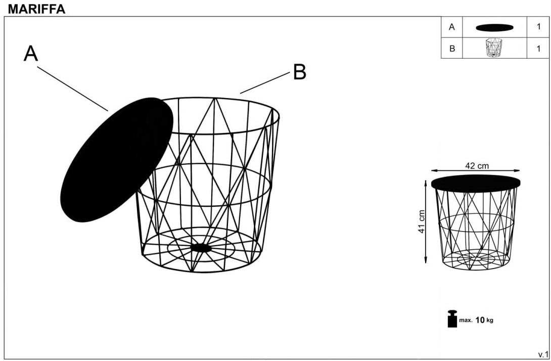 Stolik Mariffa Ø42 cm czarny - blat popielaty